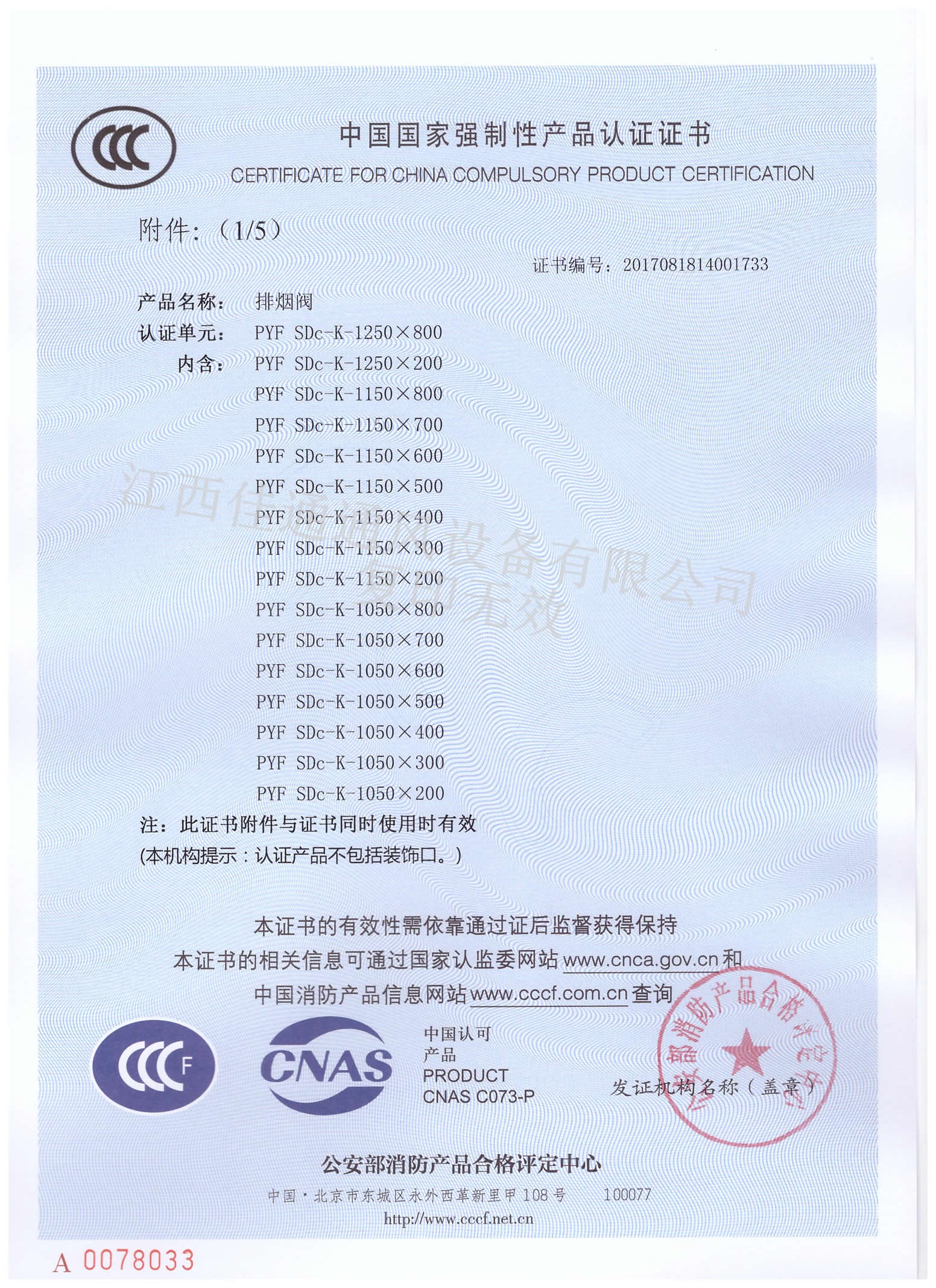 下一条:消防3C认证证书排烟阀1250×800