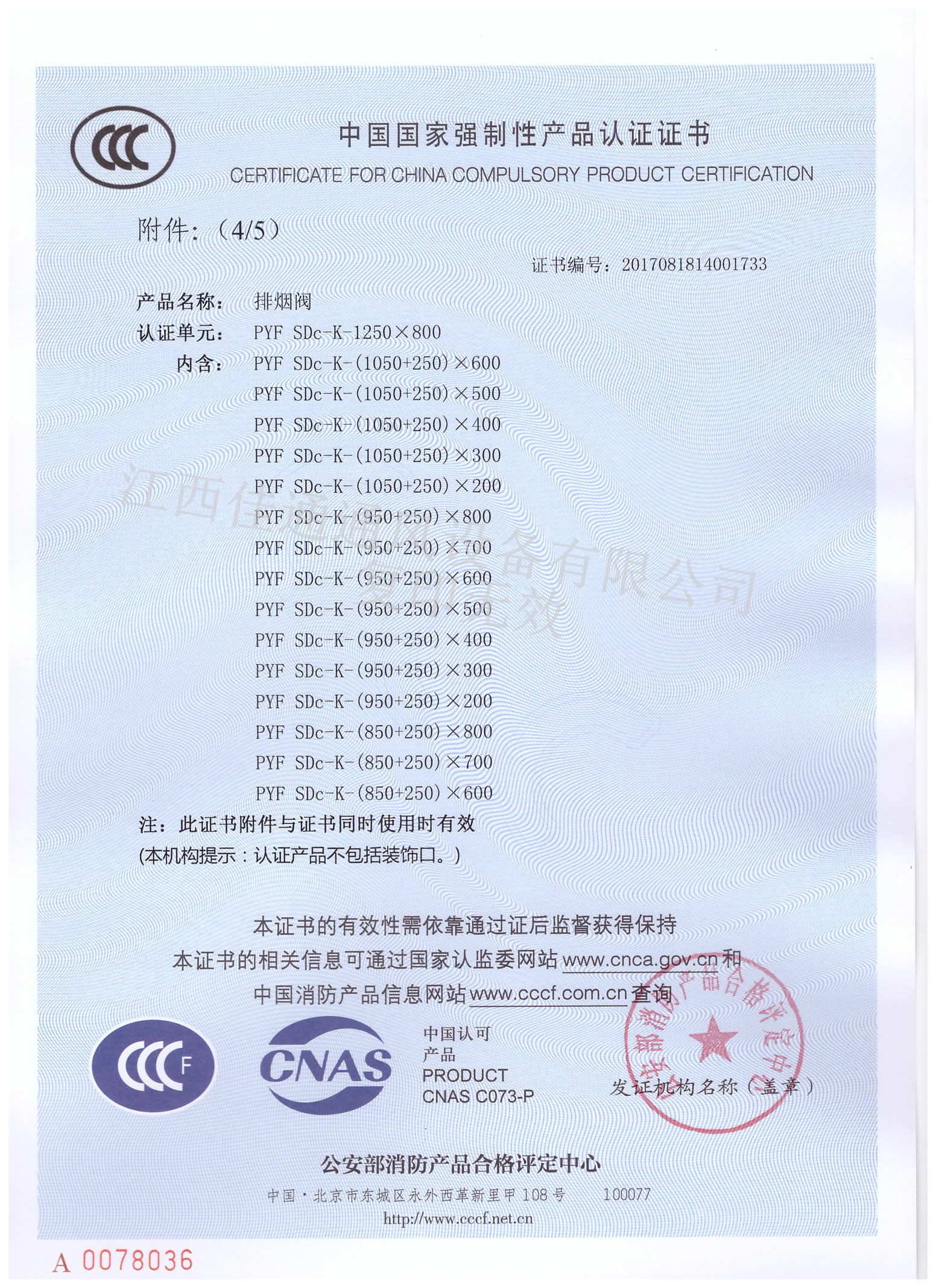 上一条:消防3C认证证书排烟阀1250×800(分型5)
