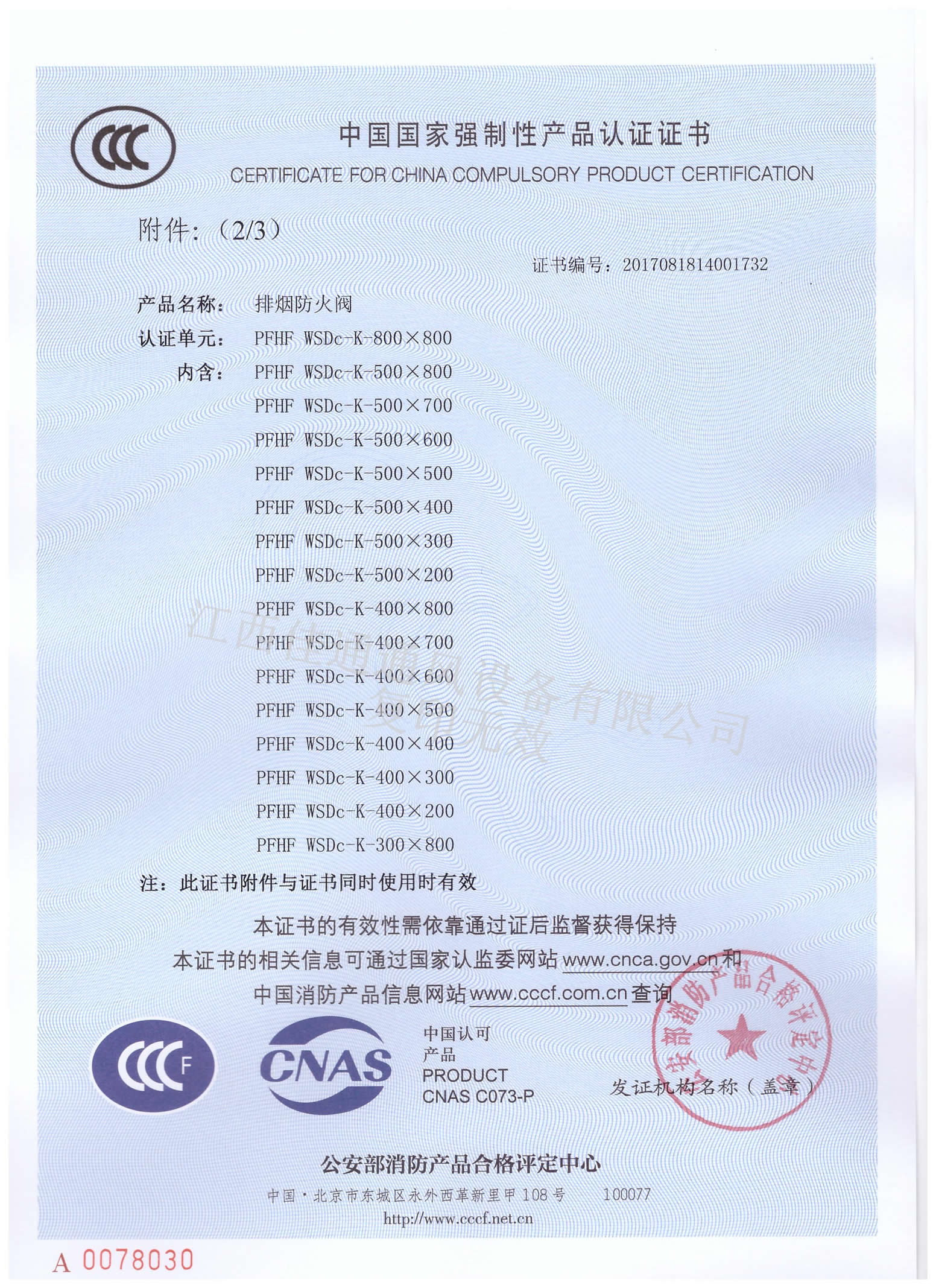 下一条:消防3C认证证书排烟防火阀800×800(分型1)