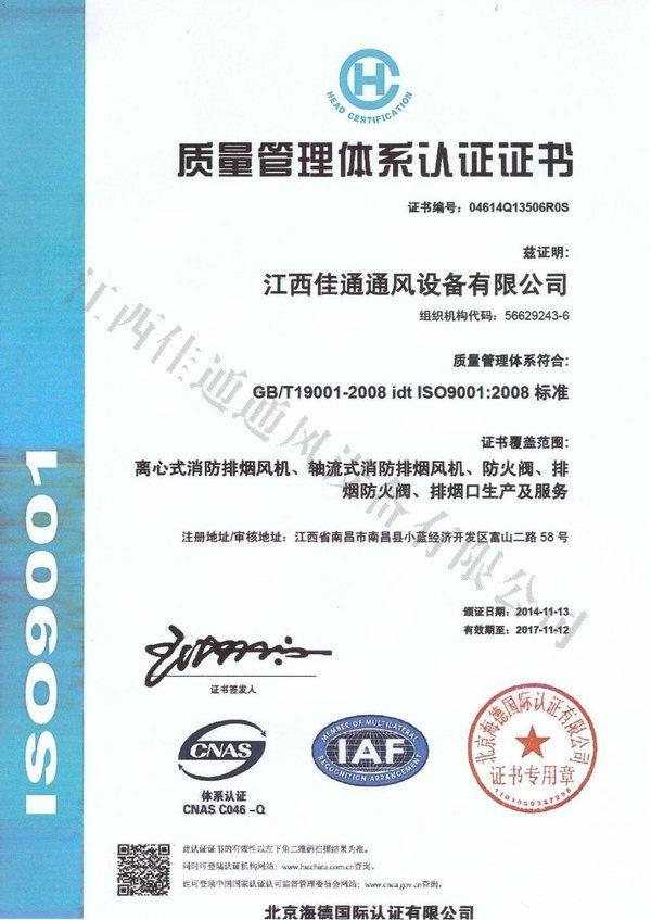 质量管理体系认证证书