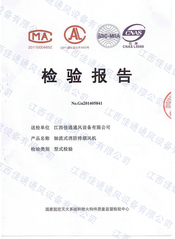 上一条:HTF-I-10轴流式消防排烟风机检测报告