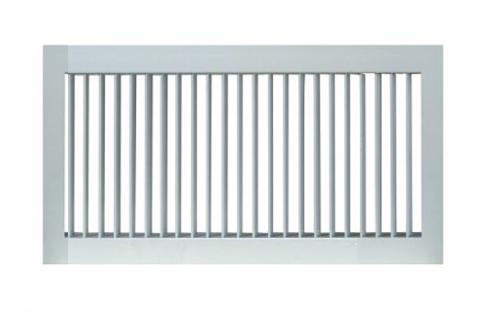 单层百叶风口常用于管道中的吸、送风用,同时可根据实际情况配上人字闸(多叶对开调节阀),用以控制风量或安装铝合金过滤器,进行配套使用。叶片可分为横放和竖放两种,可灵活的左右或者上下转动,以控制气流方向。